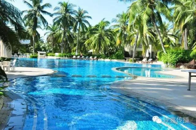 酒店有造型各異的兩大泳池。池水清潔透澈,有很多人來游泳,玩水。泳池旁還有水上滑梯,享受極速滑翔的刺激,很有意思。周圍也是椰樹環(huán)繞,一片蔭涼,在躺椅上休息,不會覺得很曬很熱。